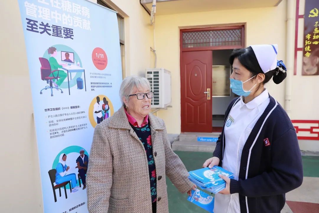 另一边,医护人员免费为居民测量血压、血糖,并进行糖化血红蛋白检测、糖尿病神经病变和眼底病变的筛查,内分泌科陈芝护士长现场发放宣传册进行糖尿病知识的健康宣教,受到居民们的一致好评。