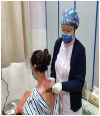 在义诊活动现场,委员们进行中医科普知识讲解,对于前来咨询的患者给予详细解答,江桂林主委为患者进行铜砭刮痧、何遂副主委和马金亚委员为患者进行耳穴贴压、滕娟为患者进行头部经穴推拿,现场义诊服务50余人次。市护理学会中医及中西医结合护理专业委员会将为我市全面推广中医特色护理技术不断努力!