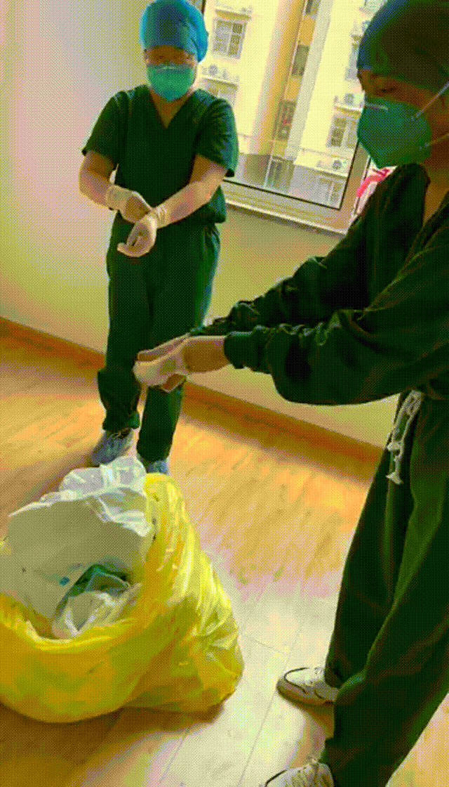 她们的脸上被护目镜勒出一道道深痕,她们的双手因长时间浸在汗水中发白发皱。为了节省时间,提高工作效率,她们习惯了上岗前不喝水,就地稍作休息后,又重新走上工作岗位……她们坚守一线,通宵达旦,只为守护人民群众的安康。