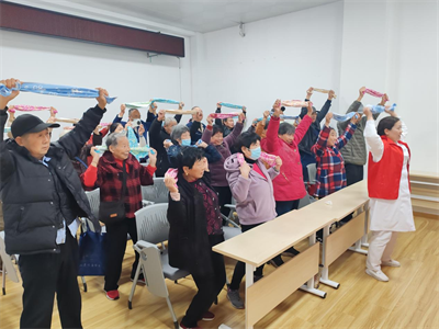 “稳稳的幸福——守护银发防跌倒”环节成为活动亮点。专委会专家结合案例开展防跌倒知识讲座,重点解读跌倒对老年人的危害及居家防控要点。随后带领老人练习防跌倒毛巾操,这套由北京市疾病预防控制中心联合体育科学专家研发的体医融合健身操,仅需一条毛巾,5分钟即可完成全套动作,通过拉伸、平衡等温和训练增强肌肉力量与身体协调性,有效降低跌倒风险。现场老人们学得认真,做得起劲,现场氛围温馨而热烈,对这套既科学又实用的健身操赞不绝口。